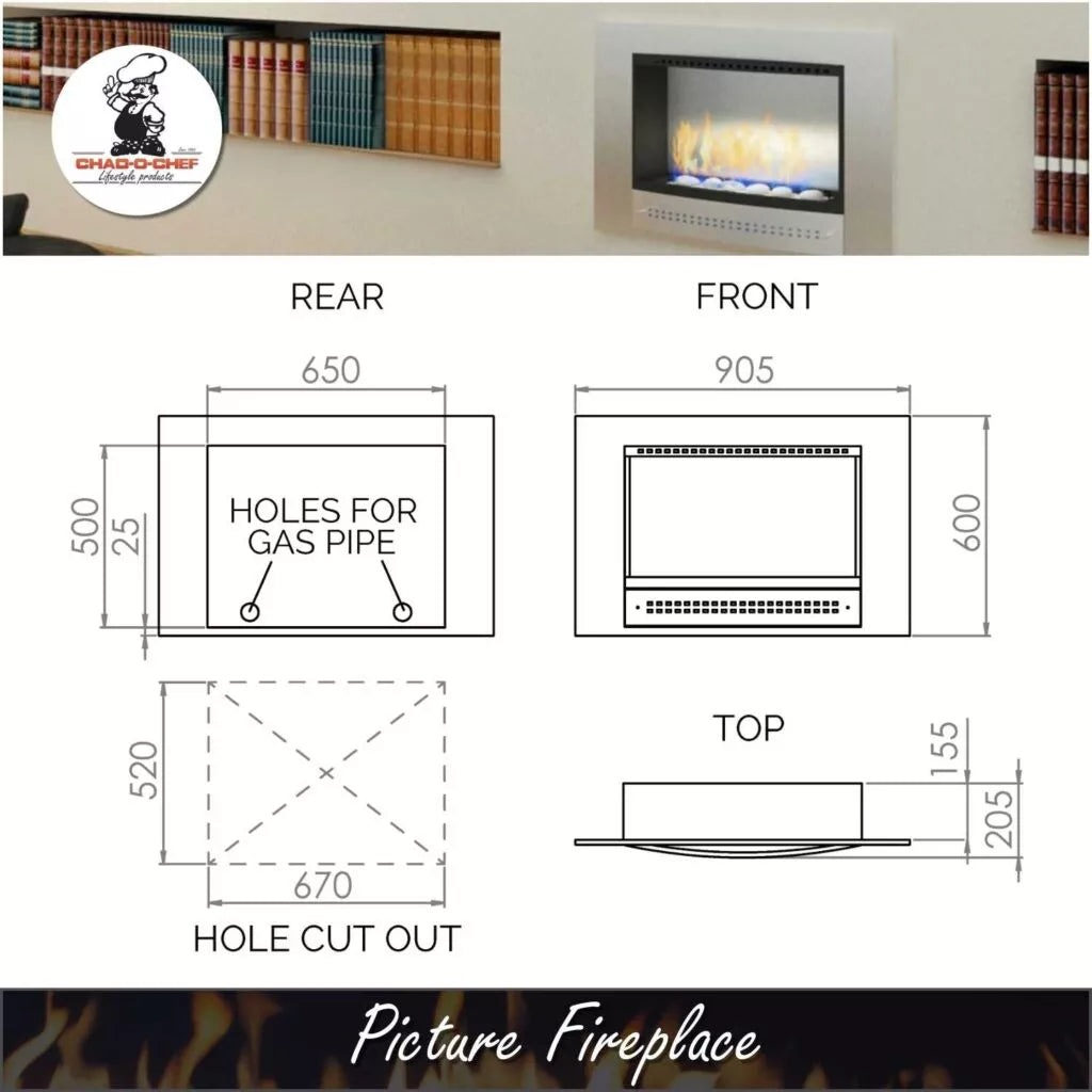 Upgrade your home’s ambiance and warmth with the Chad-O-Chef Picture Fireplace. This timeless gas fireplace adds a touch of sophistication to medium-sized spaces (up to 72m² or 233m³) and breathes new life into outdated heating solutions.
