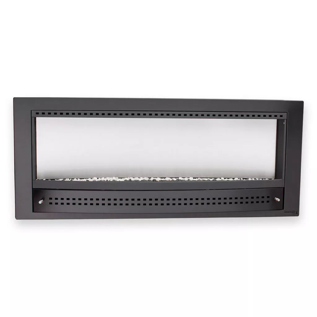 - Decorative Stones: Standard stone options include black ash in the burner, with a white stone surround. Large black coals and fire glass are also available as alternatives.