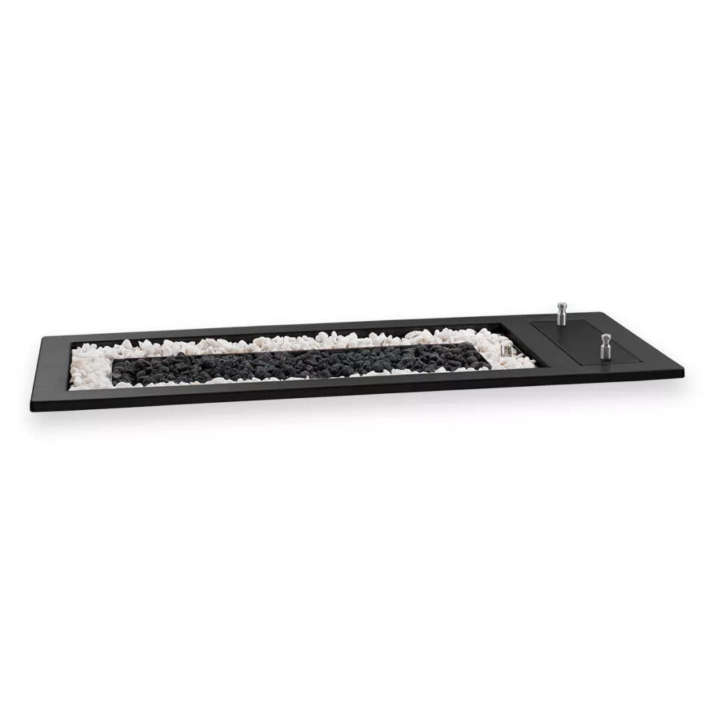 - Decorative Stones: Standard stone options include black ash in the burner, with a white stone surround. Large black coals and fire glass are also available as alternatives.