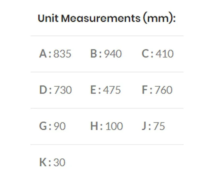 | DIMENSIONS | 940 x 835 x 410mm |