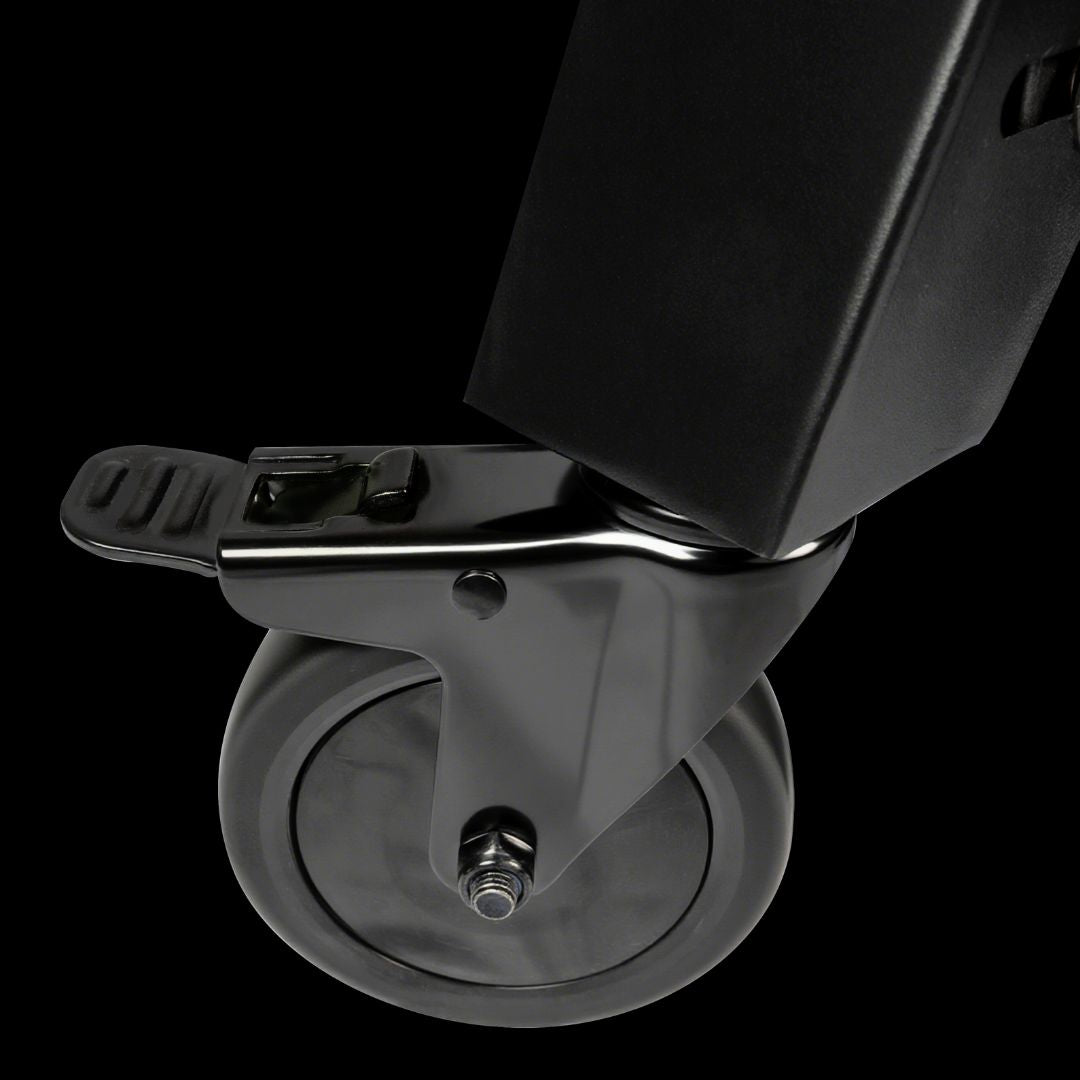 - Two HDPE Side Trays, each with integrated utensil hooks and a NEW , elegant leg stand with storage tray and premium castor wheels.