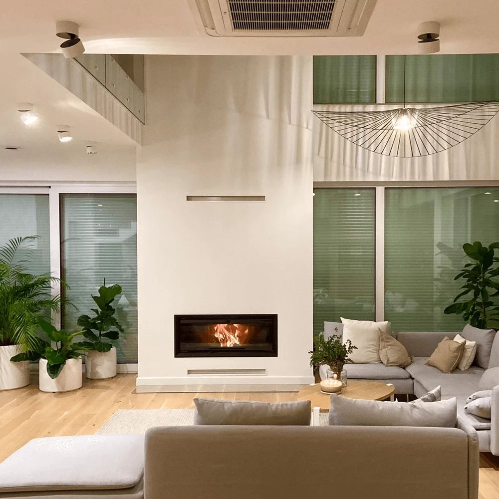 The range provides primary and secondary combustion. By utilising both natural convection and radiant heating technology, these units offer a cleaner burn and the maximum heat output. Most units in this range also come with tertiary combustion. As an efficient, closed-combustion fireplace, most of the heat generated by the burning wood is released more effectively into the room for your comfort.