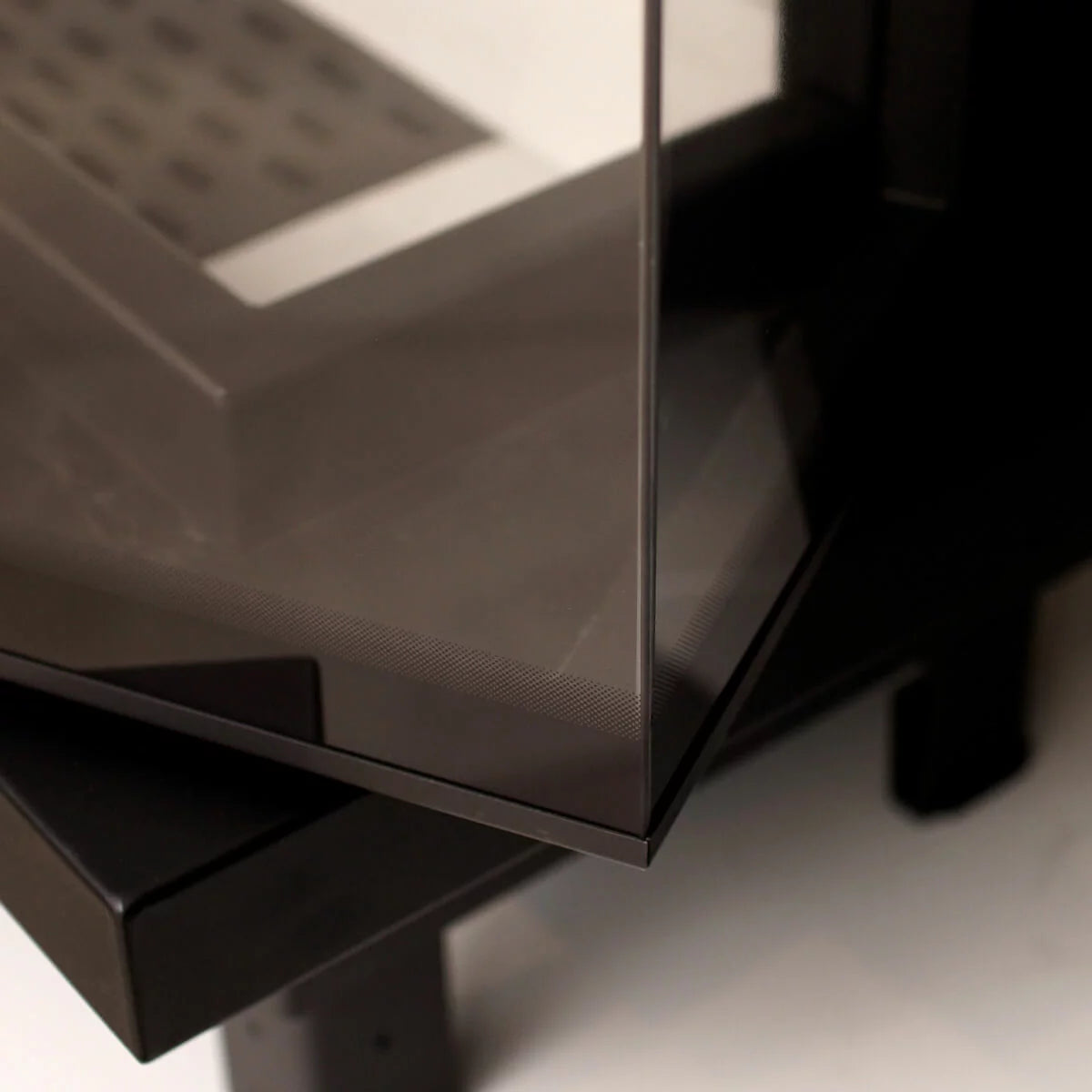 The Kratki steel firebox range pairs sleek and contemporary design with the most modern technology in fireplace combustion. Each unit boasts a sizeable glass window that provides a beautiful view of the flames once lit. For improved safety and performance, as well as an increased lifespan, the heat-resistant glass that Kratki uses is of the highest quality. Thanks to the specialised, air-wash glass cleaning system, the soot deposits on the fireplace glass are greatly reduced.