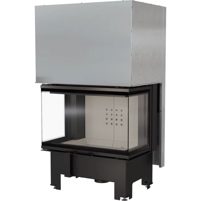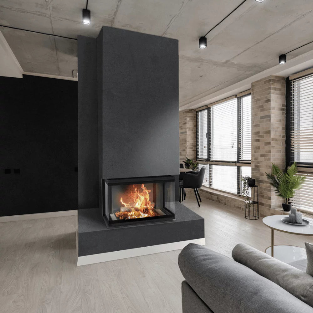 The NBC 10 is an impressive 3-sided fireplace with rise-and-fall glass door. This large glass door offers an amazing view of the fire. Luxurious and modern, this fireplace will become the centre piece of any space. The combustion chamber is lined with Kratki’s signature heat intensifying ceramics. These ceramic internals are also designed with a drop-in base that offer extra space for burning wood coals.