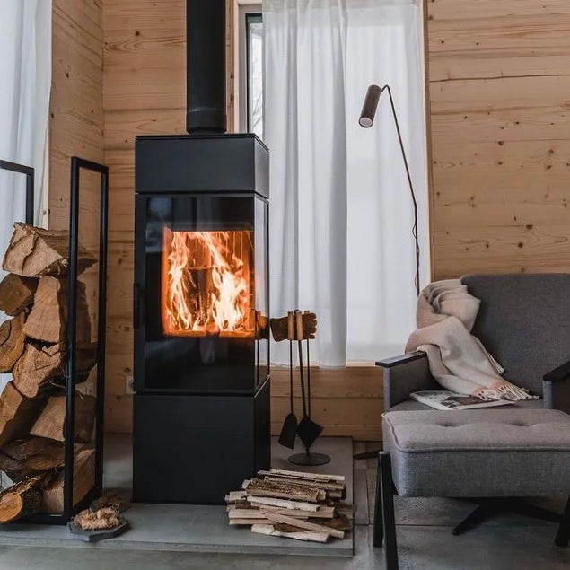 The Kratki steel fireplace range pairs sleek design and contemporary style with the most modern technology in fireplace combustion. Sure to capture your attention, the wood stoves in this range are designed to add an element of striking design to your interior. With very impressive technical specifications, this closed-combustion fireplace would be an excellent heating solution for anyone looking for a high-performance, modern, freestanding fireplace.