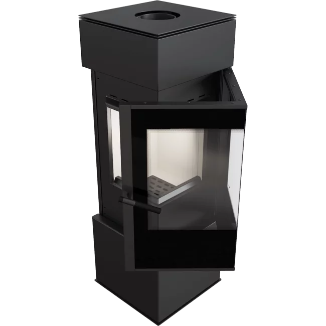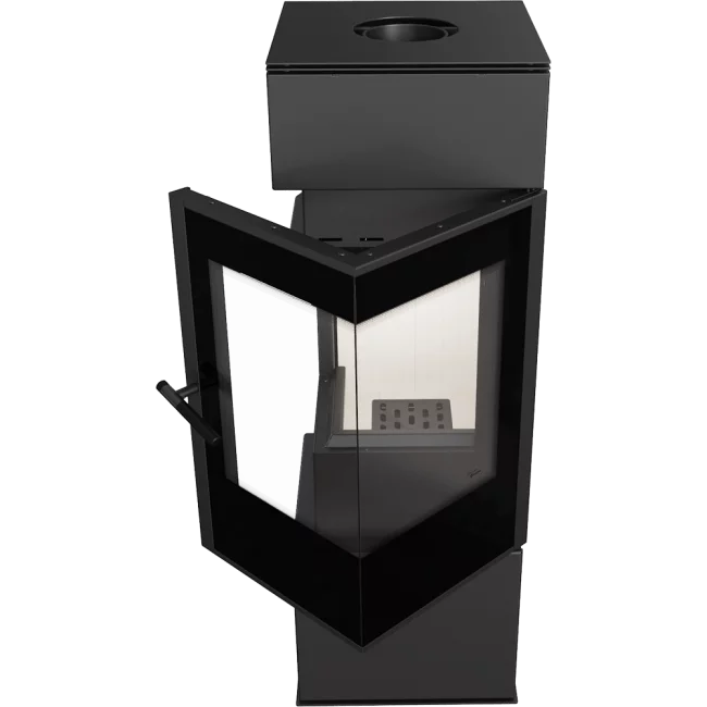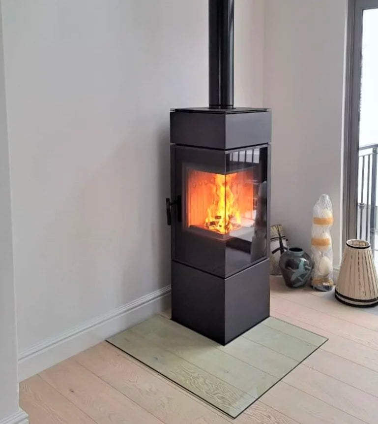 The Kratki Thor 8 is part of the freestanding steel fireplace range. With its simple form and sleek and interesting geometrical shape, it definitely attracts everyone’s attention. This closed-combustion, wood-burning fireplace is manufactured with 4mm thick steel but, most importantly, the combustion chamber is lined with heat intensifying ceramics. These unique ceramics increase the heat output of the fireplace and give the flames their attractive slow-burning effect.