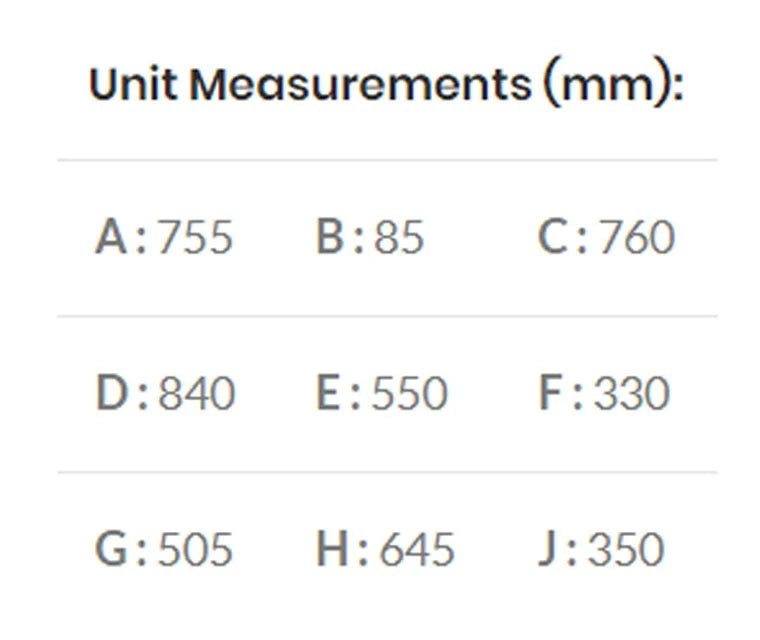 | DIMENSIONS | 760 x 840 x 550mm |