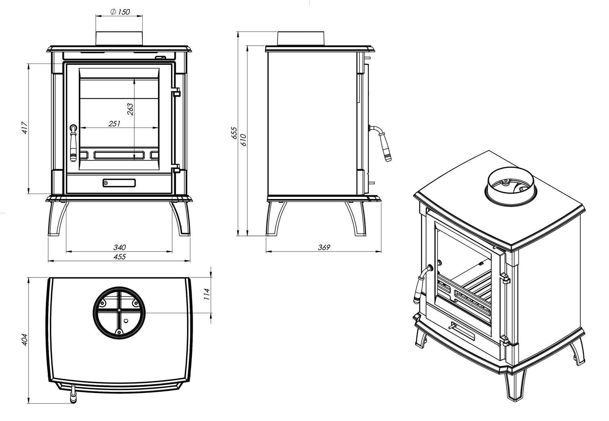 The NORDflam Erino is a neat cast iron stove by NORDflam. The product has a cast iron deflector, extending the exhaust path, and a fireproof glass with an air curtain system, which prevents soot from depositing on the glass.