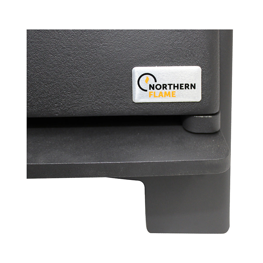 The Northern Flame Arrati is a large, heavy duty, woodburning fireplace. It features a thick cast iron door; a 10mm thick steel top and 5mm thick steel sides. It’s finished off with a large window and a polished chrome handle. Its contemporary design and modern efficiency, makes it suitable for every interior.