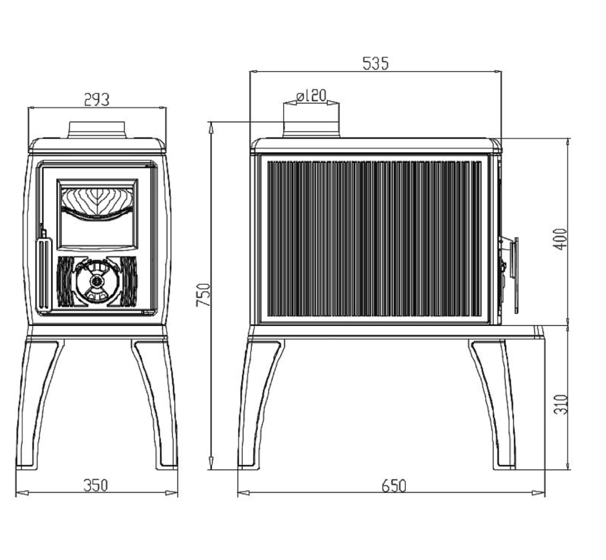 The Trenk is a strong and reliable wood log fireplace and offers a high level of heat at an economic price point. Its unique shape will add an element of farm or log cabin style to your space. The Trenk stands out for its high efficiency rating of 81% and A+ energy class rating.