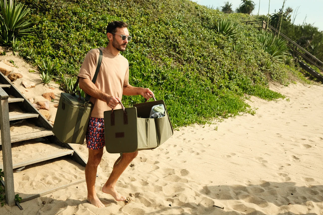 It’s made from rugged Riptech material with a reinforced, padded underlay and natural leather grips. It is tear resistant, water resistant, and fire resistant… it’s hugely versatile. Pack anything from food and snacks, to damp towels and wetsuits, cycling kit, camping gear, even firewood and charcoal. And because of its minimal pack-flat volume, you could easily keep two (or three!) in your car permanently – on hand when you need them.