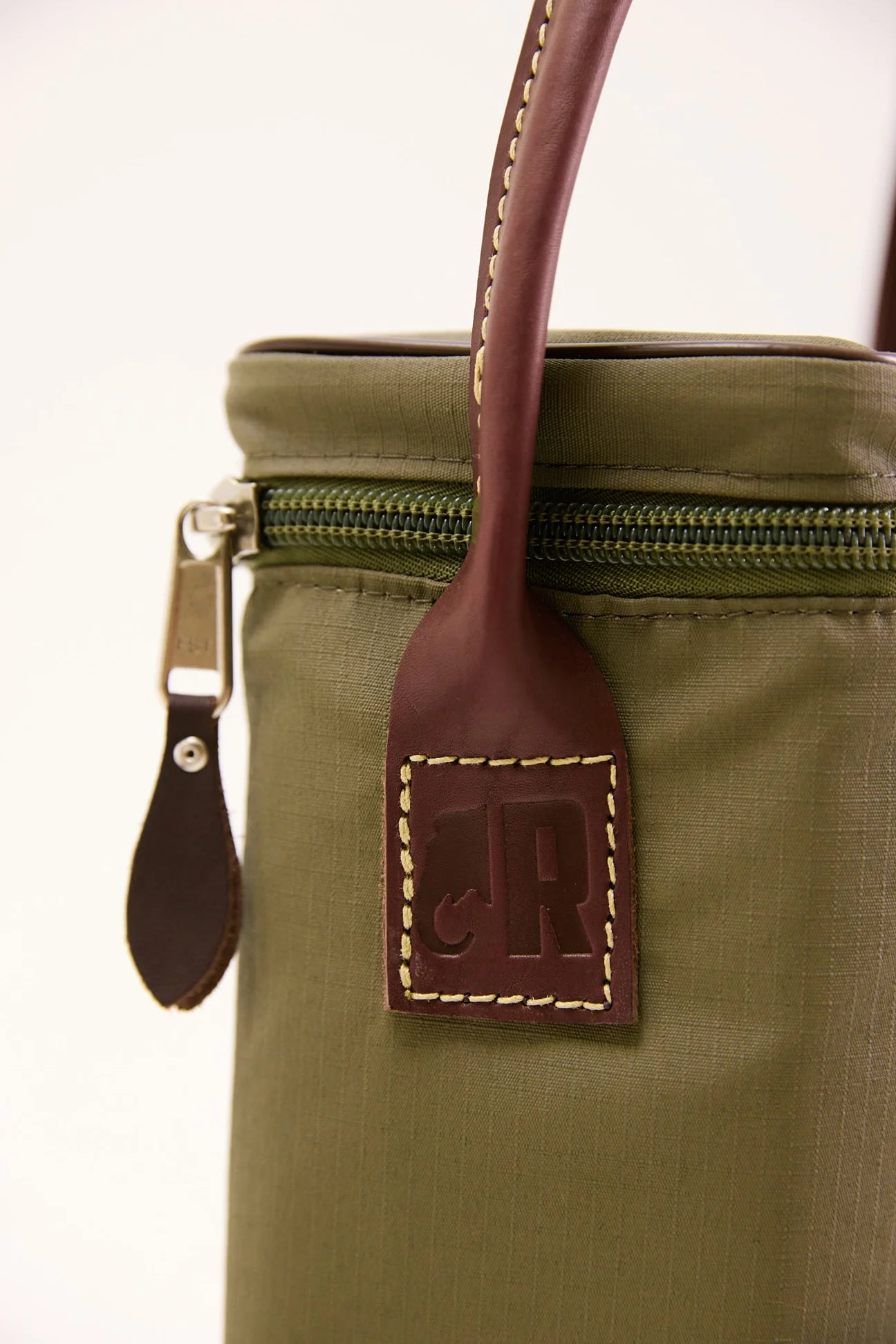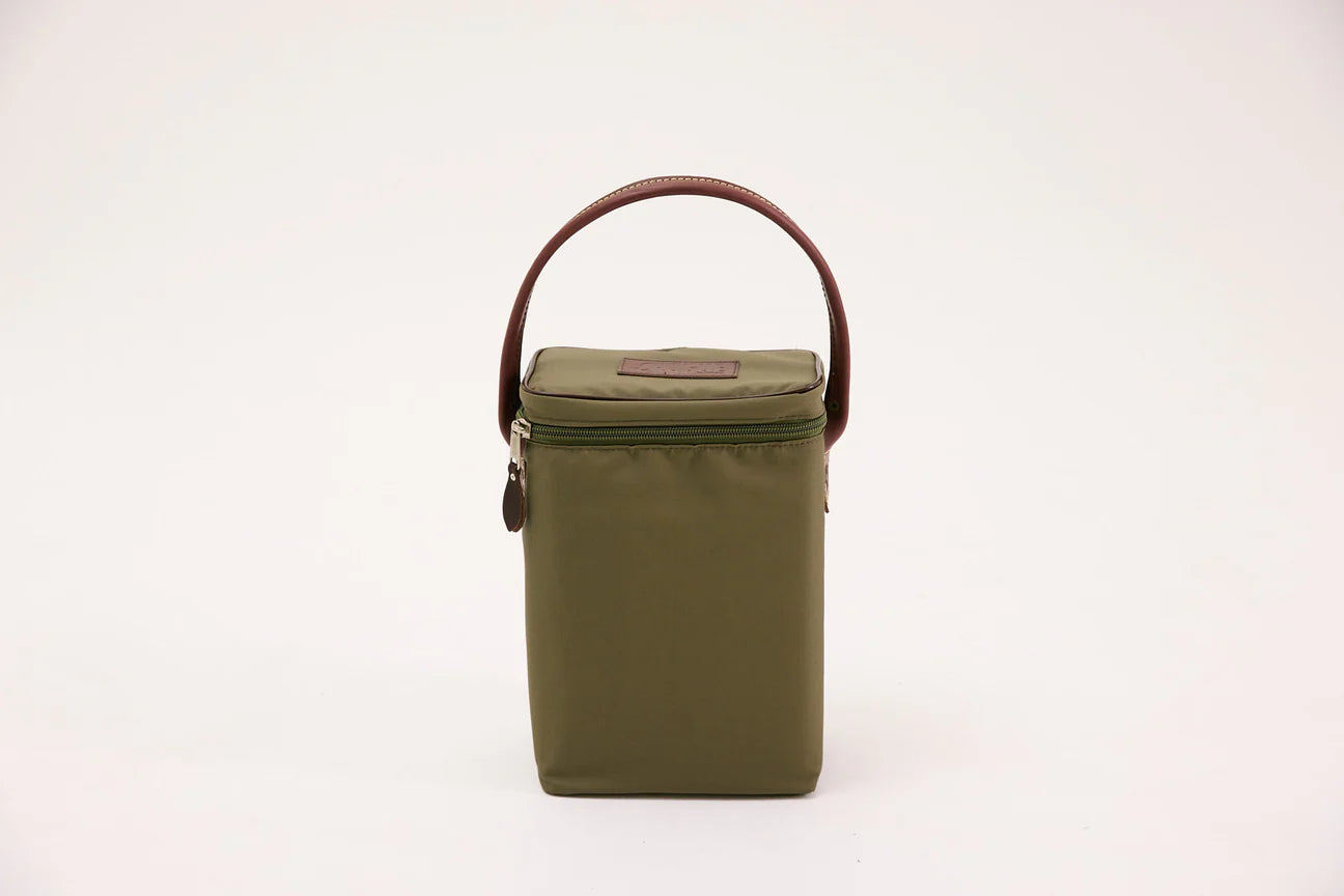 A logical extension to our soft range. Military canvas and genuine leather combine to present a safari-chic, two bottle wine cooler. Drop tested from a height of one metre.